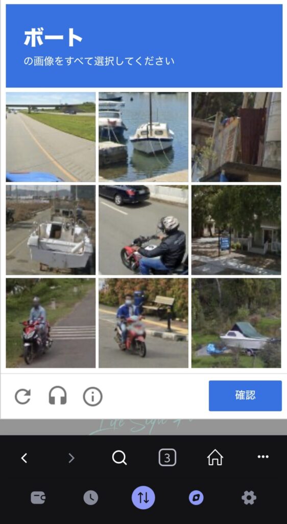 画像選択の画面になるので、人間であることを証明しましょう