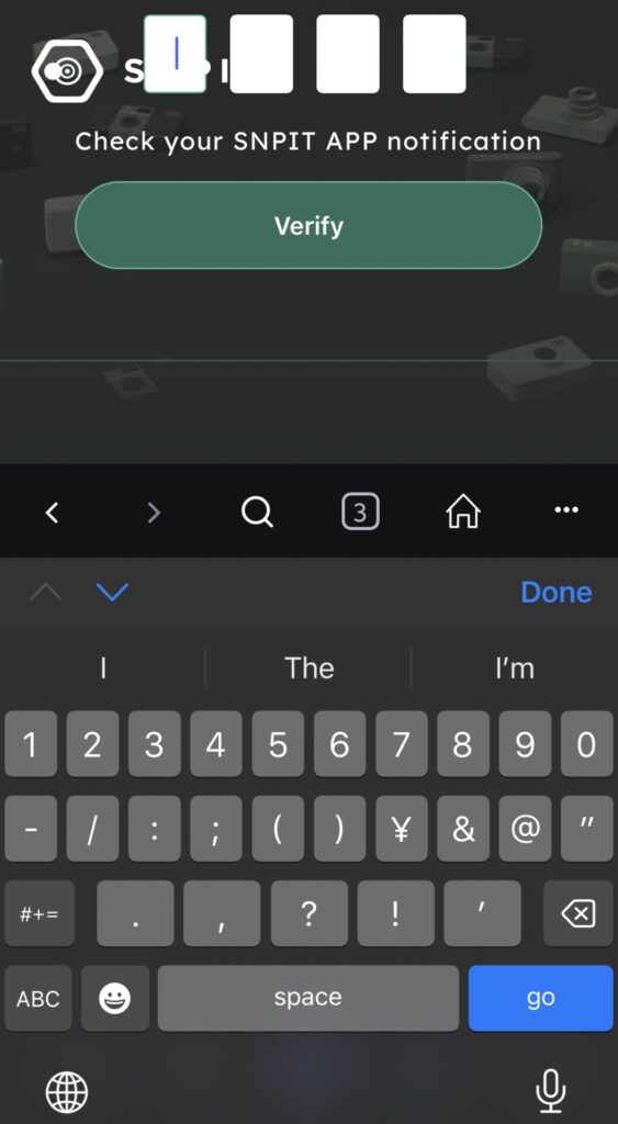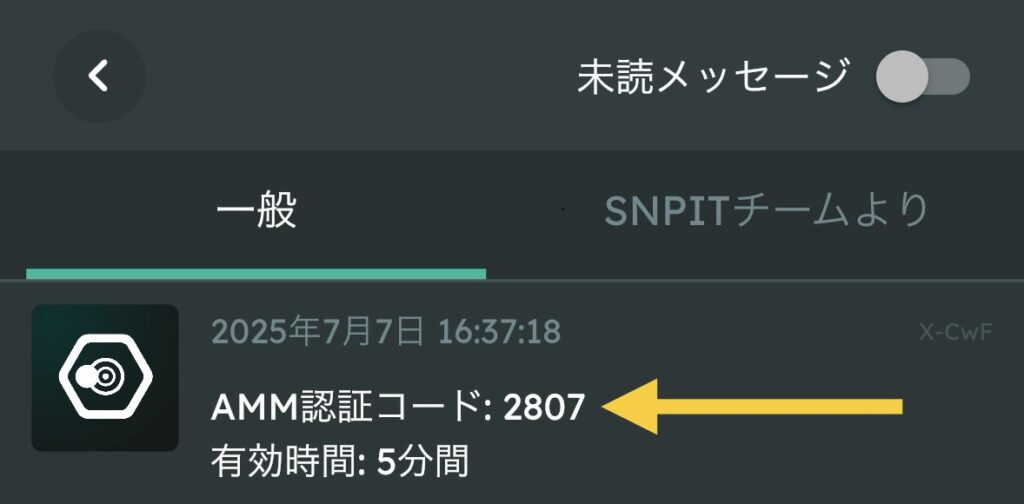 画像認証が終わると SNPITアプリの通知に4桁の数字が届きます