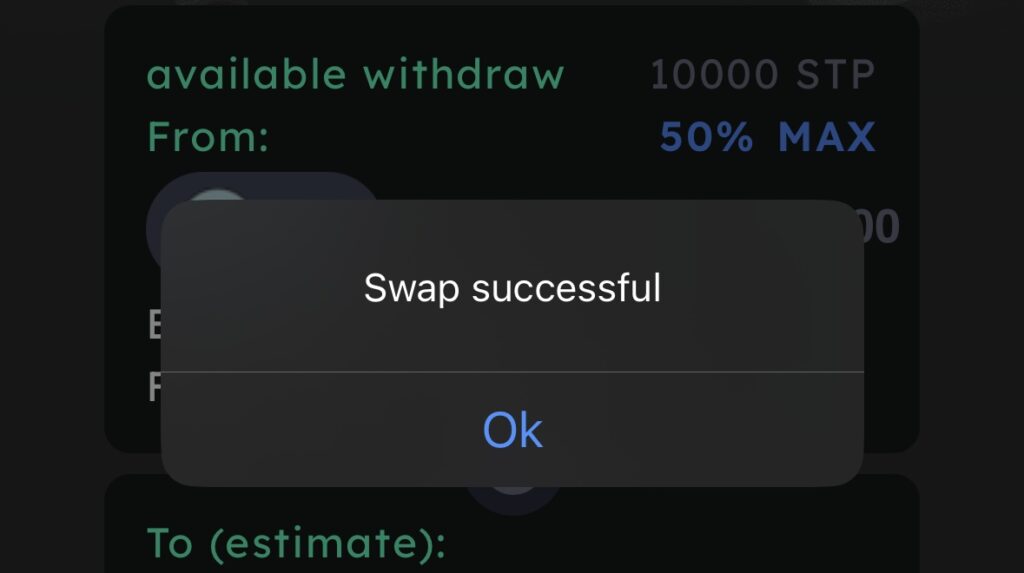 「Swap successful」という表示が出たら、SNPT(暗号資産)への交換は終了です!