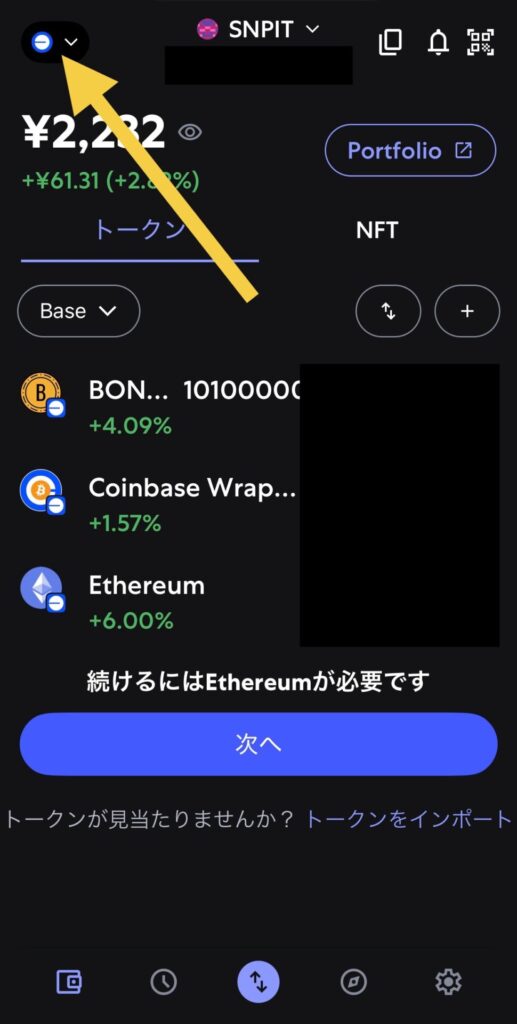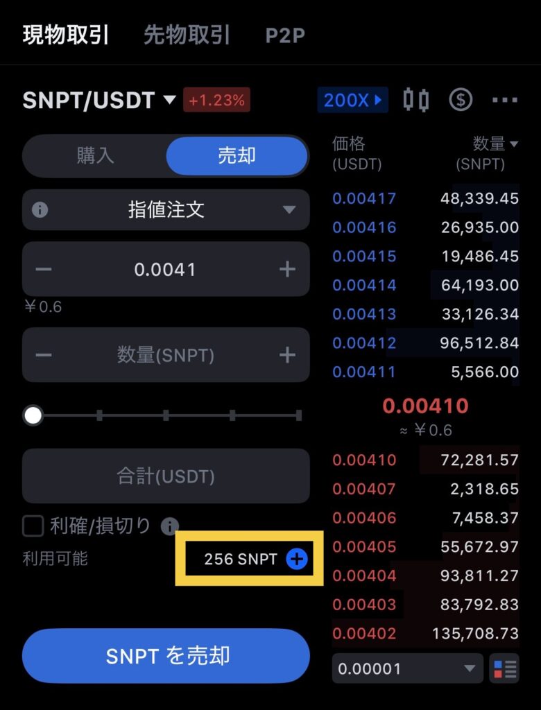 入金が反映されて、SNPTが一番上の段に表示されてる!