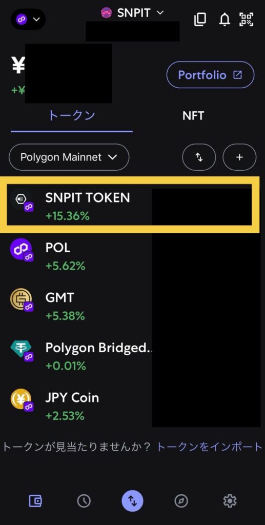 ・SNPT(SNPIT TOKEN)のインポートも忘れずに