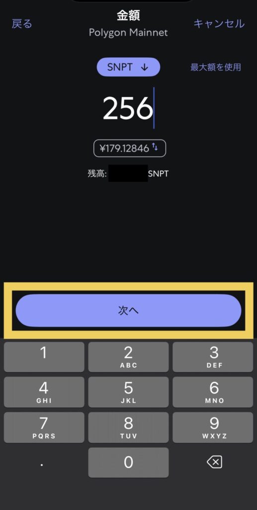 送金したい数量を入力します