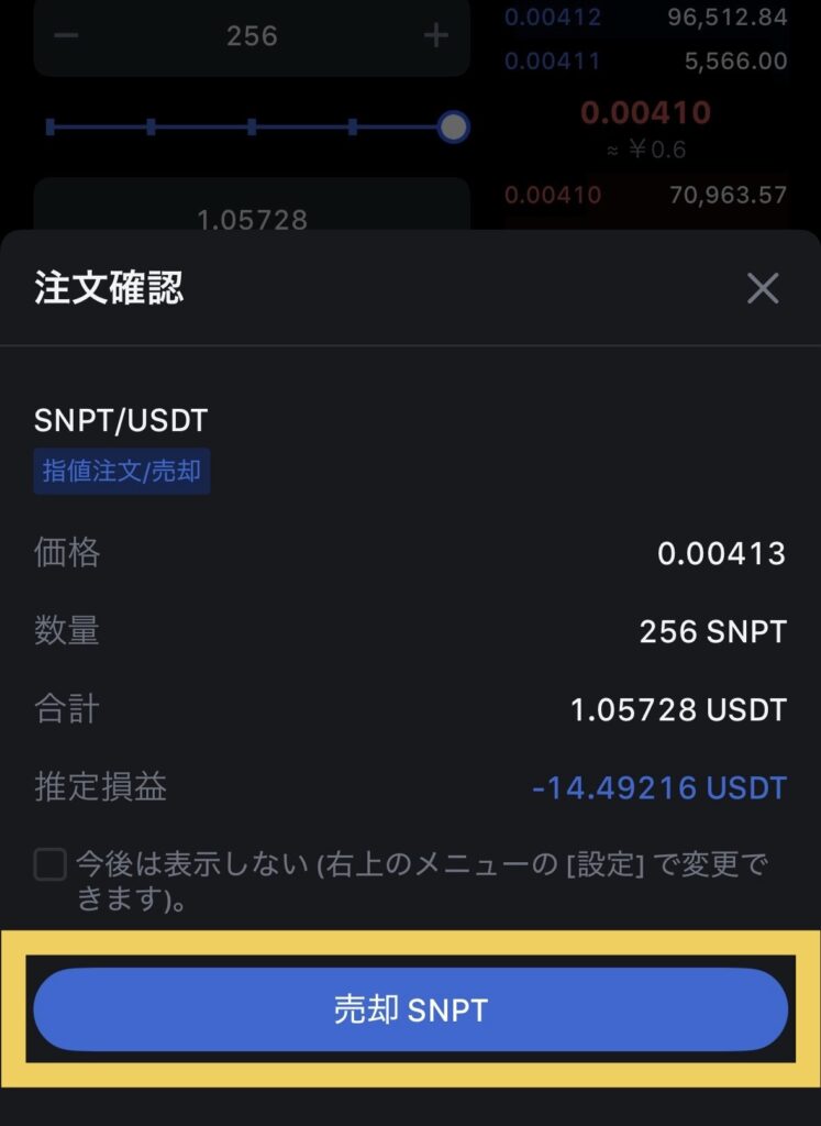 交換したSNPTの数量と交換した時のSNPTの値段(円)をメモしておきましょう