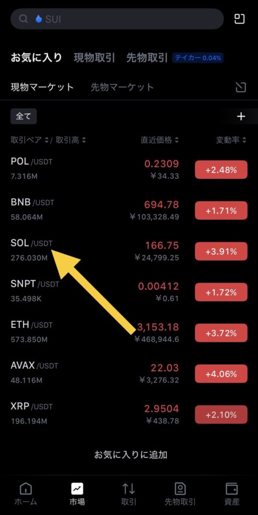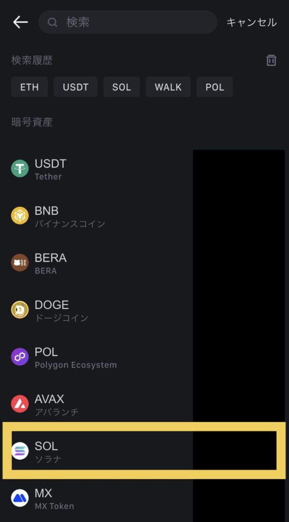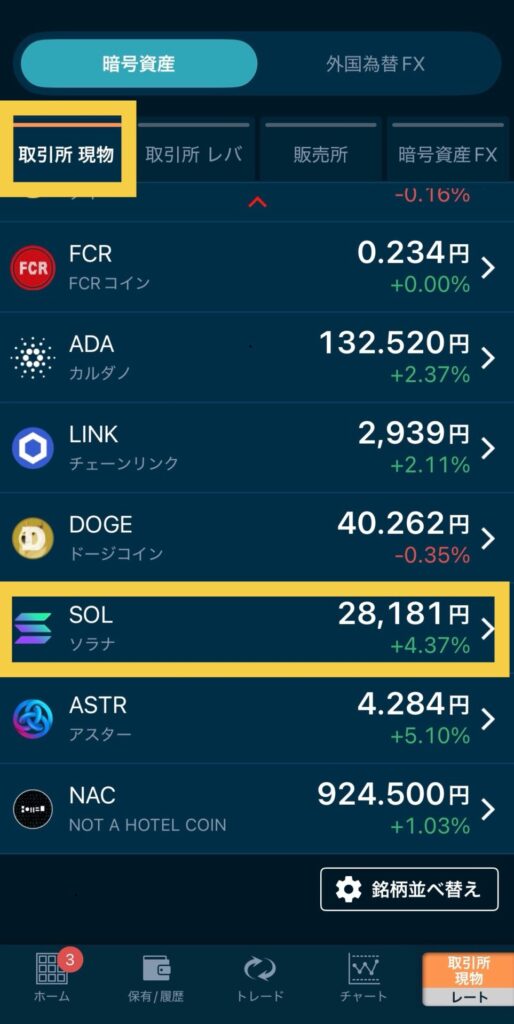 「SOL ソラナ」をタップします