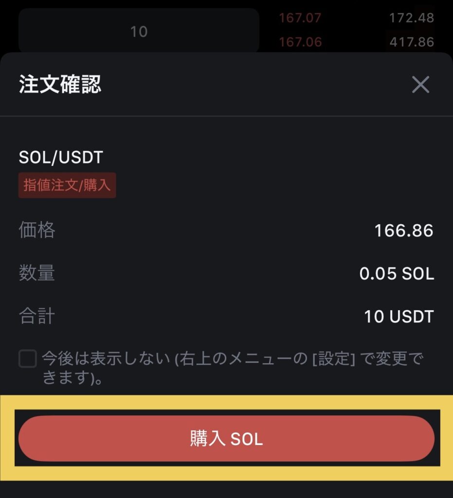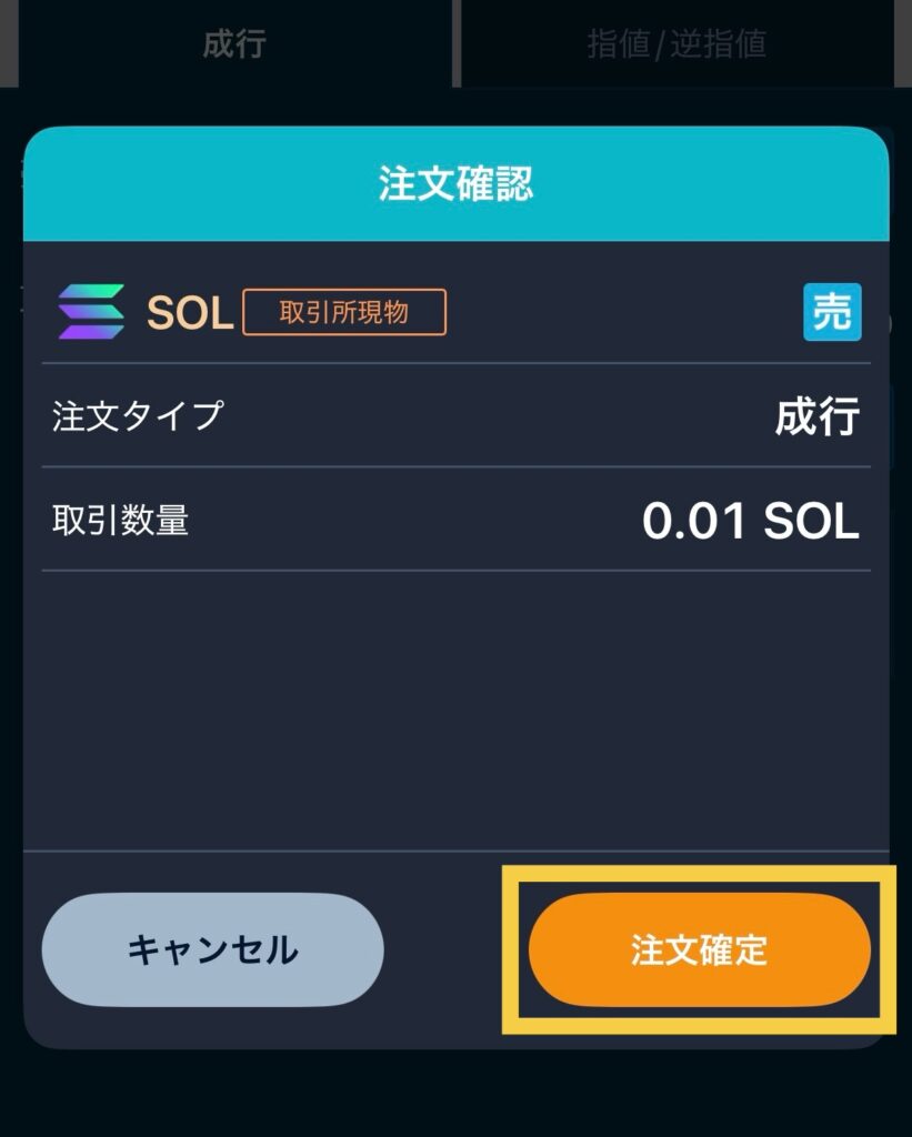 最終確認をして、「購入SOL」をタップします