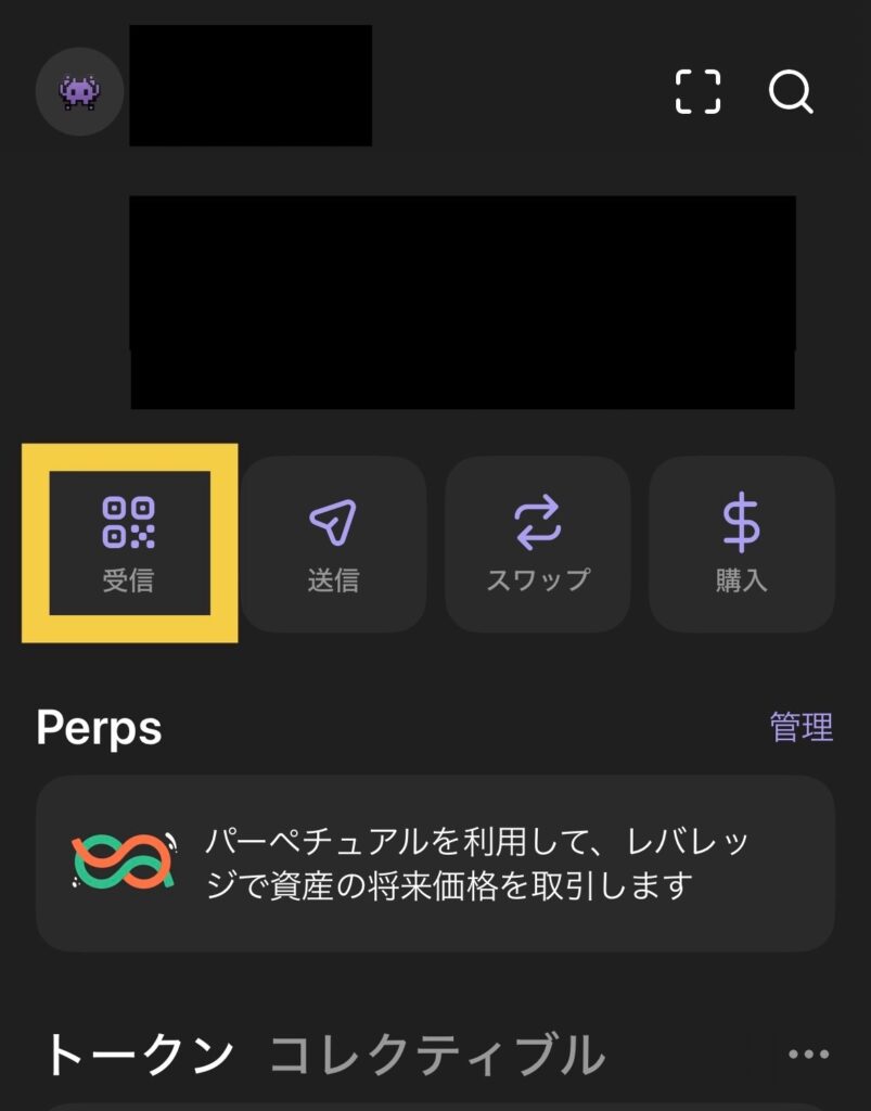まず、送金先のウォレットアドレスをコピーしておきます