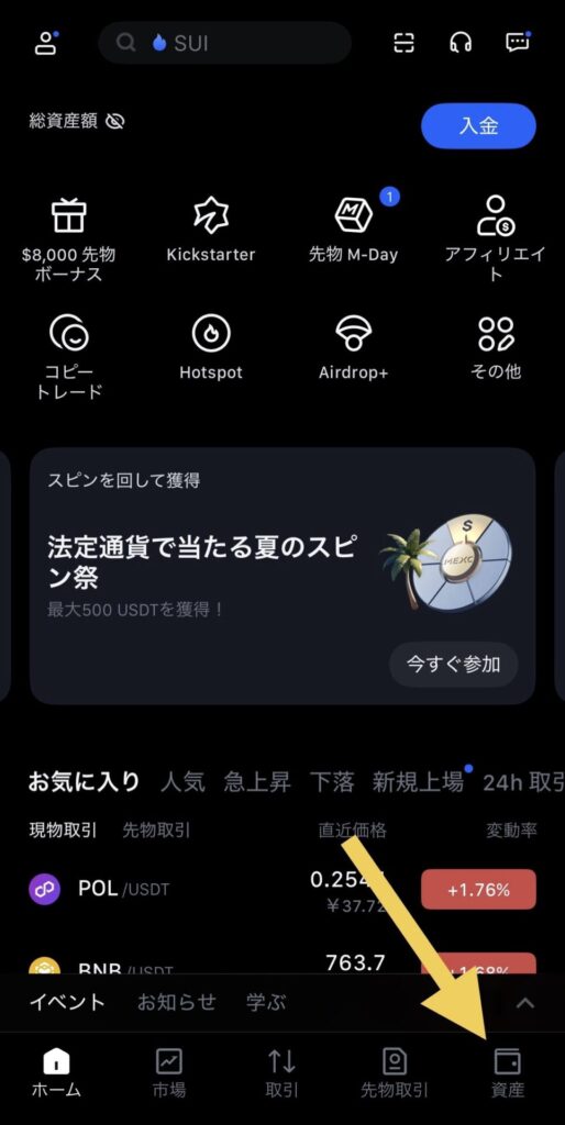 MEXCからウォレットに送金する