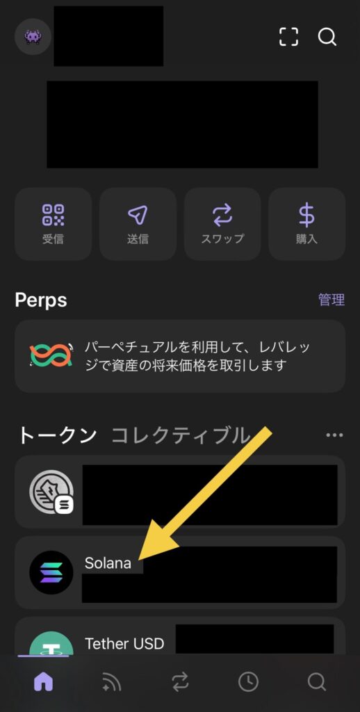 Solana をタップします