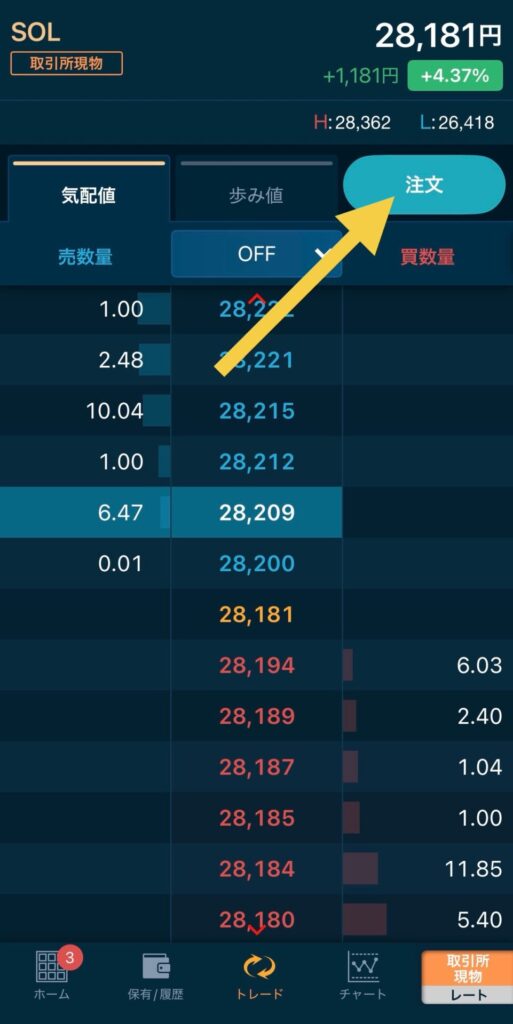問題がなければ、「SOLを購入」をタップします
