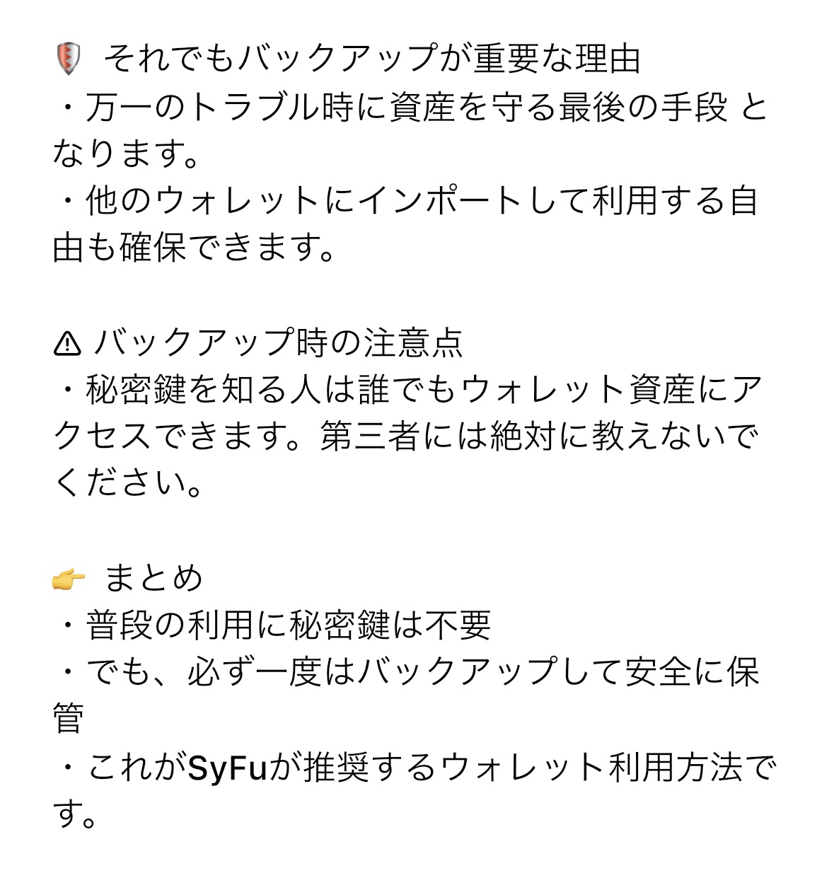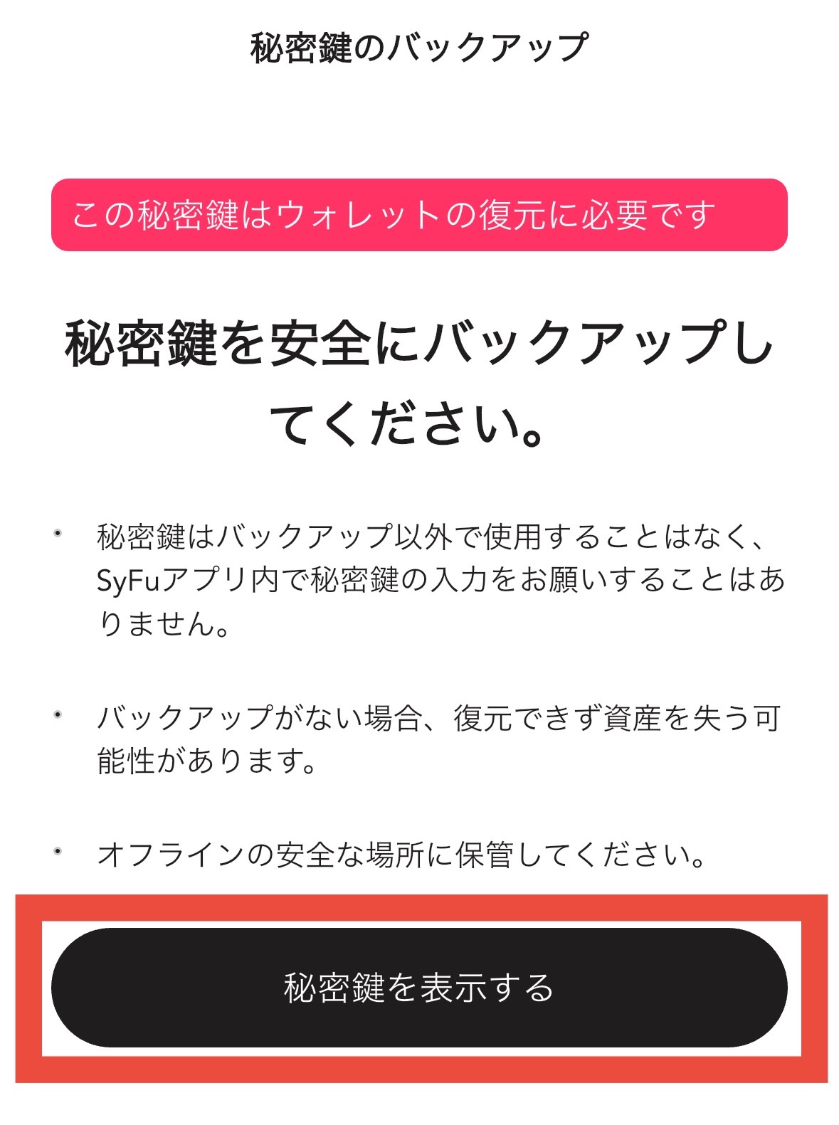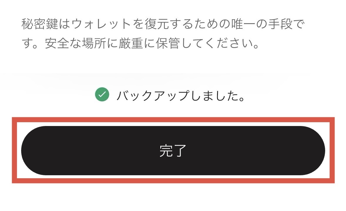 必ずバックアップ(秘密鍵をメモ)しておきましょう!