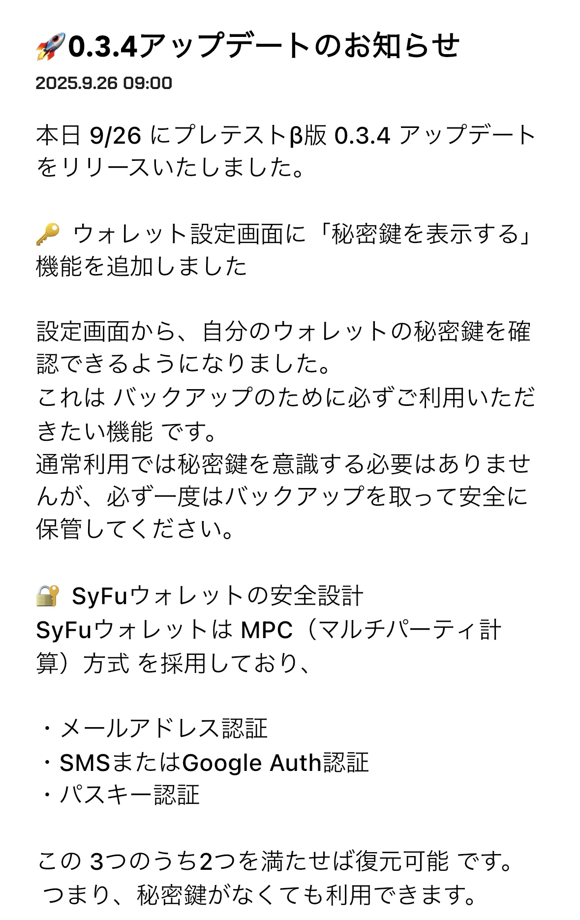 「メインネットオープンベータに参加する方法〜SyFu 初心者ガイド〜」をご覧ください