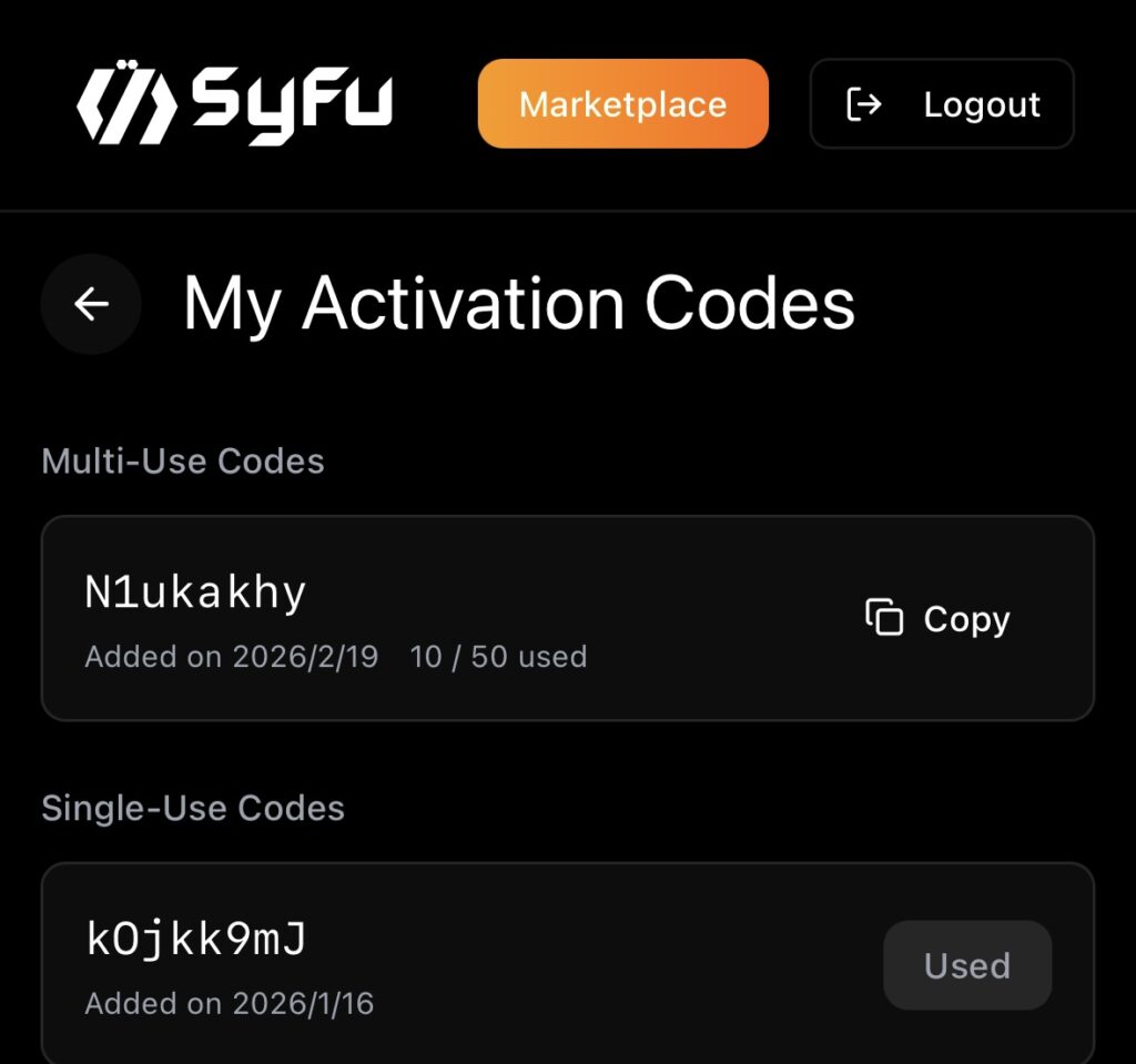 アクティベーションコード取得はこちら(SyFu公式アナウンスより)