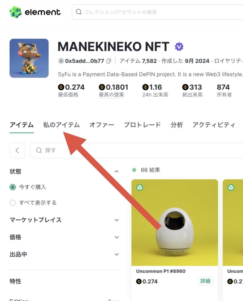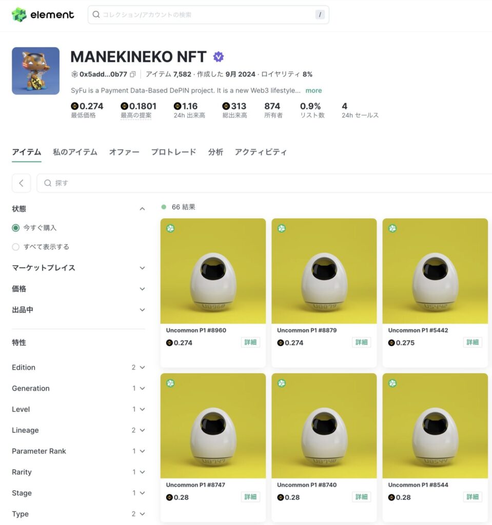 ゲーム内で使えるのは MANEKINEKO NFT です!